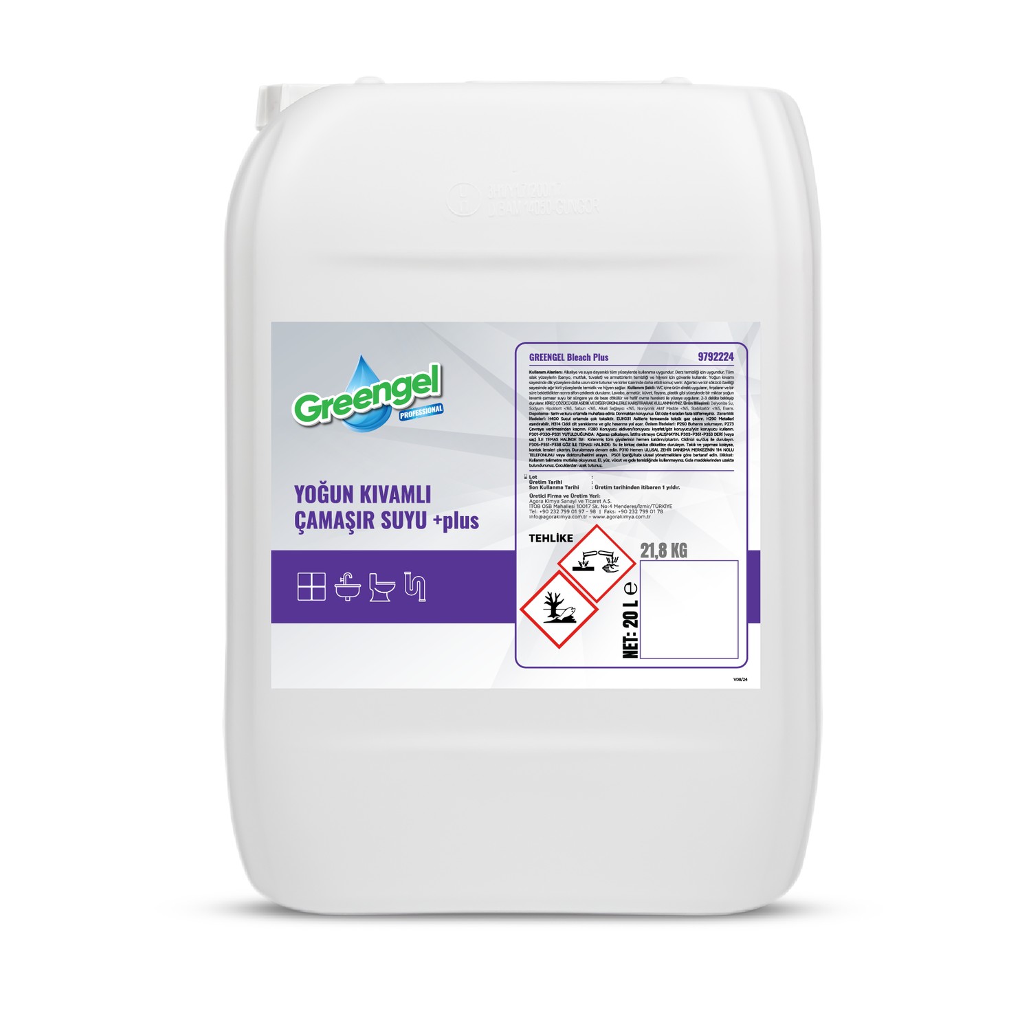 Greengel Bleach Plus-Yoğun Kıvamlı Çamaşır Suyu 20L