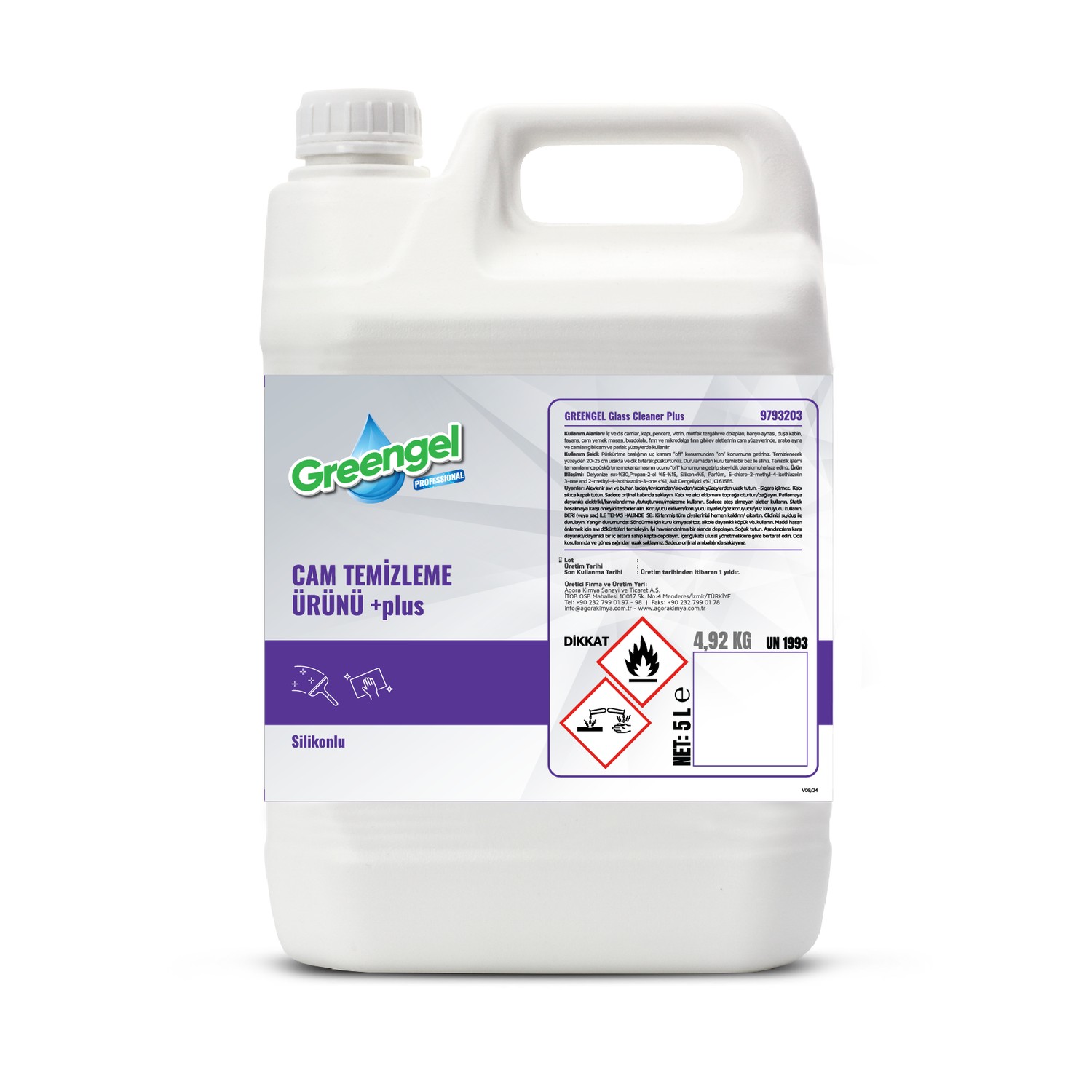 Greengel Glass Cleaner Plus-Cam Temizleme Ürünü 5L – Silikonlu